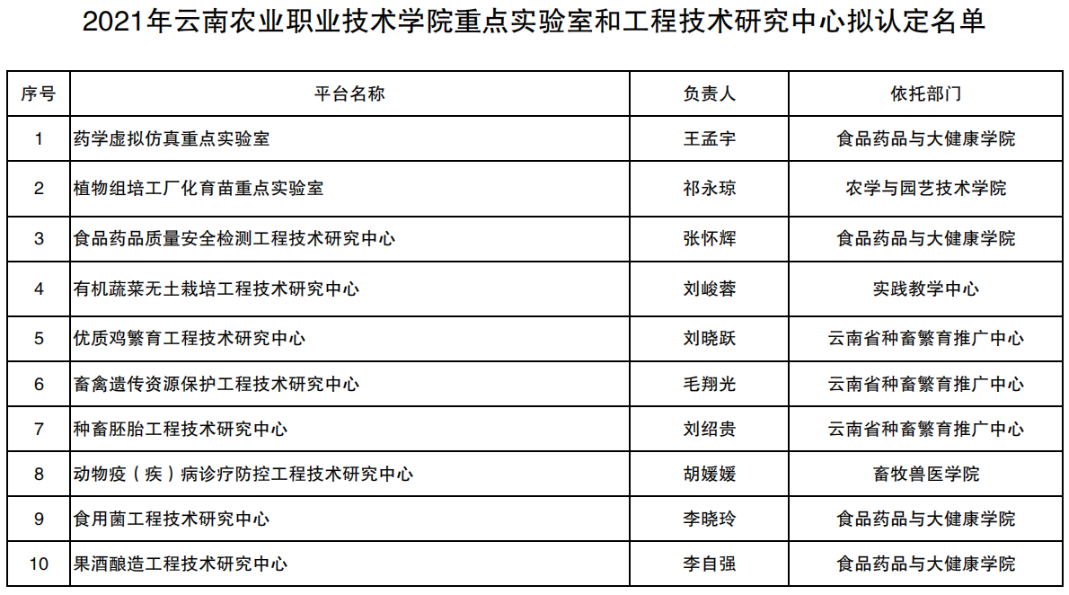 附件:2021年云南農業職業技術學院工程技術研究中心和重點實驗室擬認定名單.xlsx