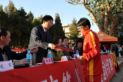 之后,本屆運動會裁判長董玉洲宣布了運動員個人比賽成績;俞浩副院長宣布了運動會集體獲獎名次。就坐在主席臺的領導為獲獎的集體和運動員代表頒發了錦旗、獎狀。