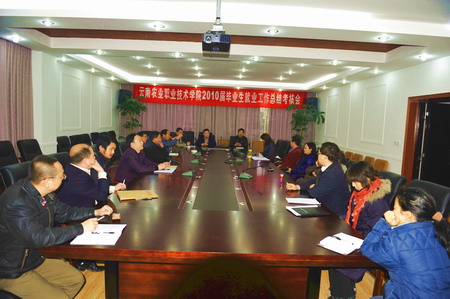 通知中心各教學系按抽簽順序就本系2010屆畢業生就業工作基本情況、工作成效、工作經驗、工作特色、工作差距和不足、存在主要問題以及今后的工作思路和打算等,結合PPT形式作了全面的總結和匯報。14位考評委員根據《云南農業職業技術學院2010年畢業生就業工作目標責任量化考核標準》對各系的匯報情況進行評分。去掉一個最高分和最低分后的各系平均得分,將作為各系2010年就業工作考核定等的主要依據,并于2011年3-4月份學院召開教學工作和學生工作會議時表彰獎勵。