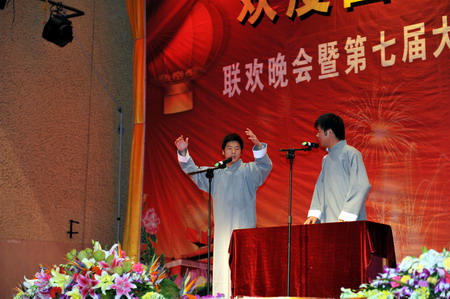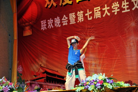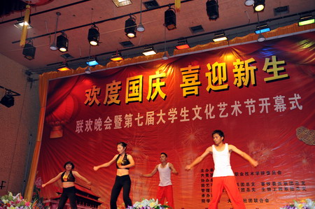 晚會以基礎(chǔ)部體育老師洋溢著青春活力的“青春活力串燒”健美操首先登場,展示著我院師生朝氣蓬勃、昂揚(yáng)向上的精神風(fēng)貌。泰國留學(xué)生的“椰子舞蹈”則給我們帶來了異國的風(fēng)情。晚會既有弘揚(yáng)民族精神的武術(shù)表演,也有反映我國多民族紛繁異彩的彝族舞蹈“阿細(xì)跳月”、藏族舞蹈“游子情人”,也有青年學(xué)子喜愛的流行歌曲演唱;李永華老師一曲深情的“母親”感染了全場的每一位觀眾,富有歐美情趣的舞蹈“B--BOX”和“爵士舞”把晚會推向高潮。晚會的歡笑聲、贊美聲和掌聲此起彼伏,伴隨著曼妙的音樂經(jīng)久不息,