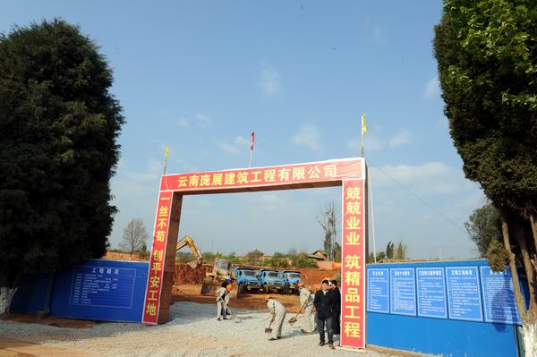施工方云南龐展建筑工程有限公司總經理黃金昆在致辭中作出保證,嚴格執行國家有關標準和合同要求施工,努力把該項目建設成為優質工程;確保施工安全,確保工程按時按質順利完成。