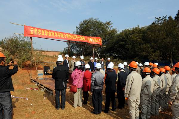 彭志遠院長在致辭中強調,此次開工的項目是我院自行籌資一千多萬來建設的兩棟大樓——新行政辦公樓、新教學樓,建筑面積共6200余平方米,我們要用好這筆錢把項目建設好!此項目按照有關招投標程序由成功投標的云南龐展建筑工程有限公司施工,由云南藝匯監理咨詢有限公司對工程進行全程監理。工程按合同要求在五個月內完成,于今年8月竣工。此項目與去年底開工的學生公寓樓將以全新的面貌迎接下半年新生的到來!彭院長為此提出三點要求,一是要確保工程質量,把項目建設成為優質工程;二是樹立安全第一的意識,確保施工安全;三是學院各部門緊密配合做好服務工作,使工程能夠順利按期完成。并預祝工程順利竣工。