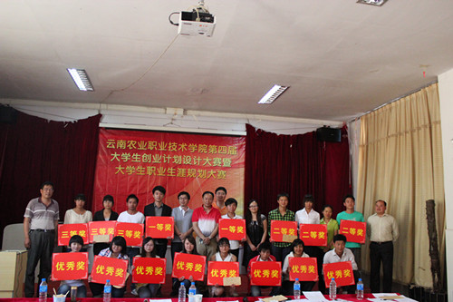 2012年5月18日下午2:00,學院招生就業處在小哨校區多媒體教室三成功舉辦了主題為“我規劃我成功,我創業我快樂”的第四屆大學生創業計劃設計大賽暨大學生職業生涯規劃大賽。招生就業處處長潘彥維、學生工作處處長周誠、畜牧獸醫系主任趙躍、園藝與園林工程系主任唐世凱、生物工程系黨總支書記許邦麗、管理與信息工程系副主任徐開宏,以及特邀昆明青年企業家協會副會長張陟,云南省教育廳、省勞動就業局、省大學生創業大賽指定創業導師、大衛咨詢機構首席經濟學家胡專擔任本次大賽的評委。