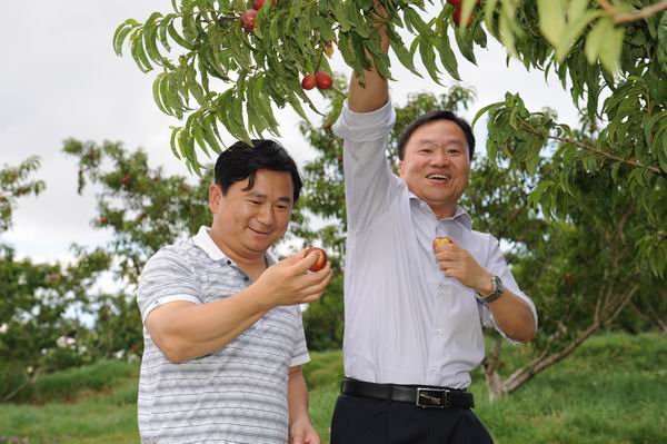彭院長陪同張正全院長品嘗農場油桃
